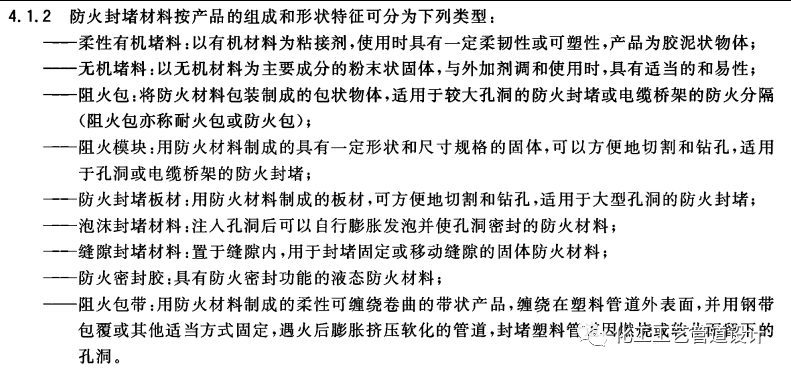 防火封堵材料的性能应满足《防火封堵材料》GB23864-2009相关要求。标准提供以下防火封堵材料。