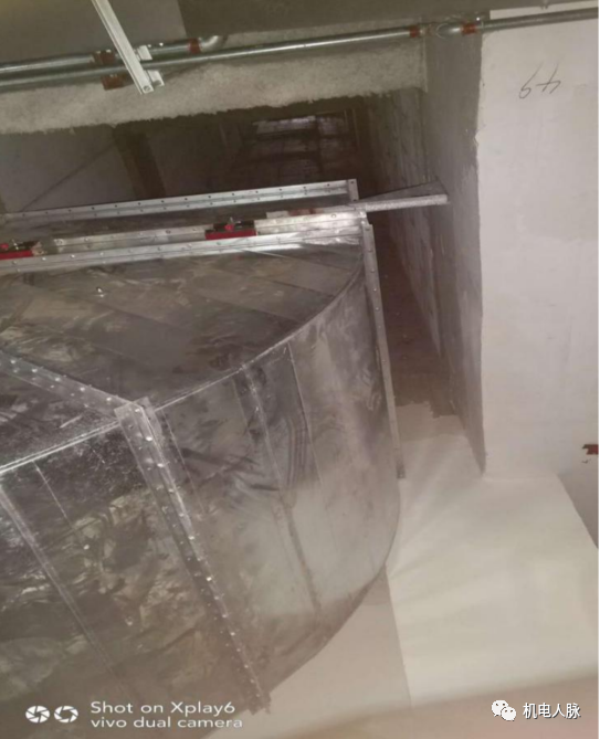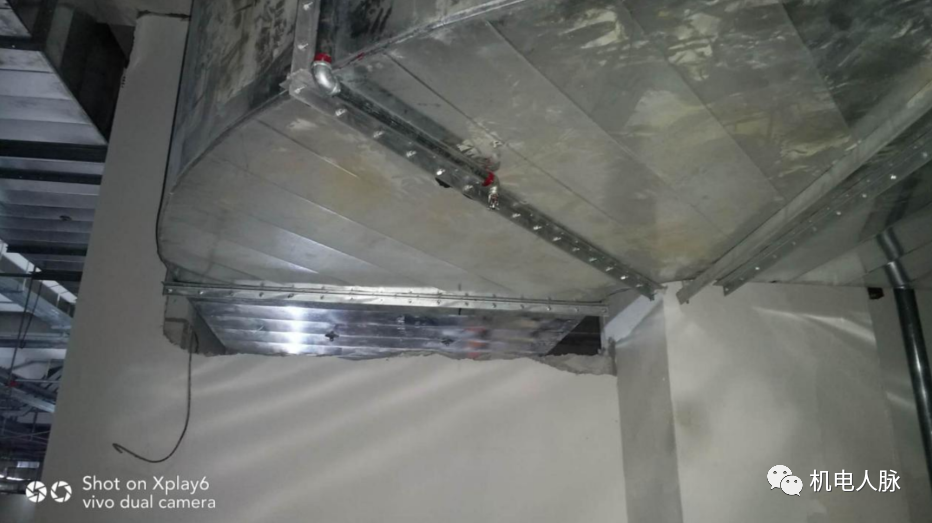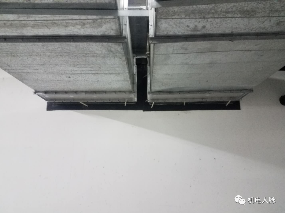1)水平风管封堵,土建专业先将风管上下左右四面墙修补到距风管5cm处,通风单位再将风管与墙体缝隙采用岩棉封堵,最终采用防火板做墙面修边封堵。