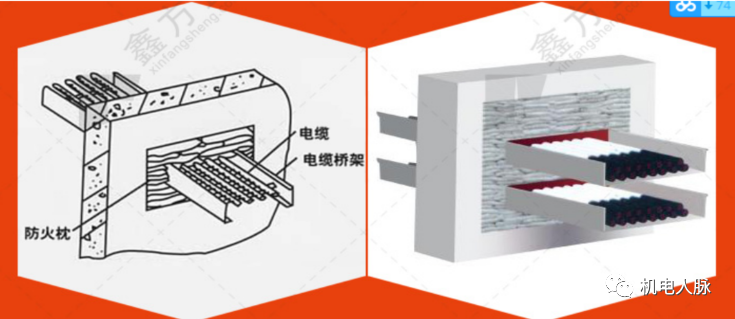 2)用砖块+混凝土将大的孔洞砌上,保证桥架各个面与墙体有5厘米左右的间距,再用防火包封堵。