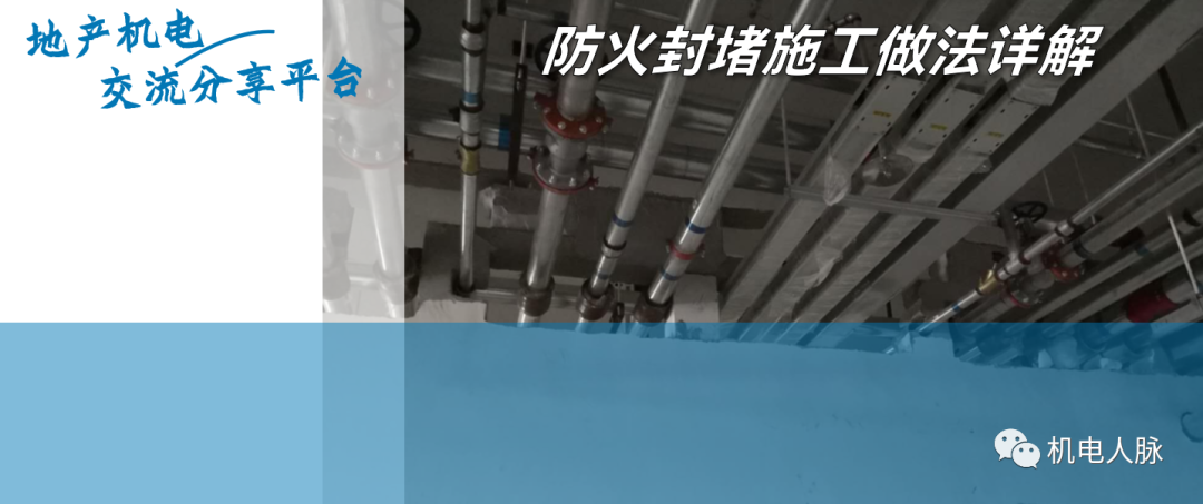 根据防火规范及设计要求电缆(沟、竖井、桥架)、通风管道、给排水管道等施工穿越预留孔洞、隔墙、楼板、防火墙时必须做好防火封堵工作。