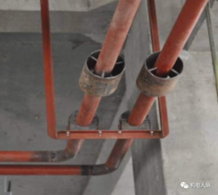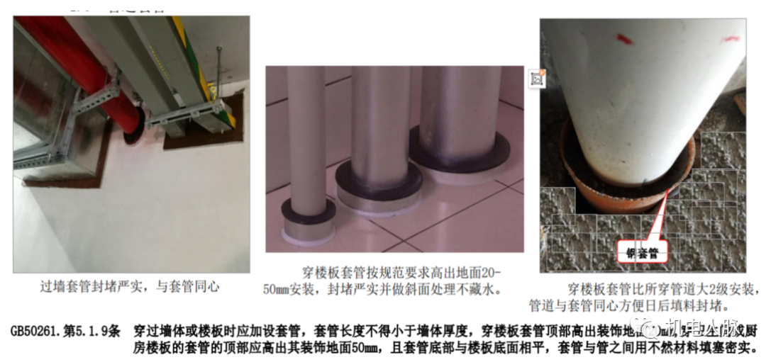 3)穿墙及穿楼板套管与管道安装同心